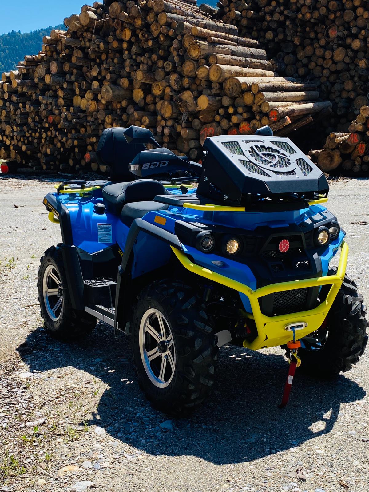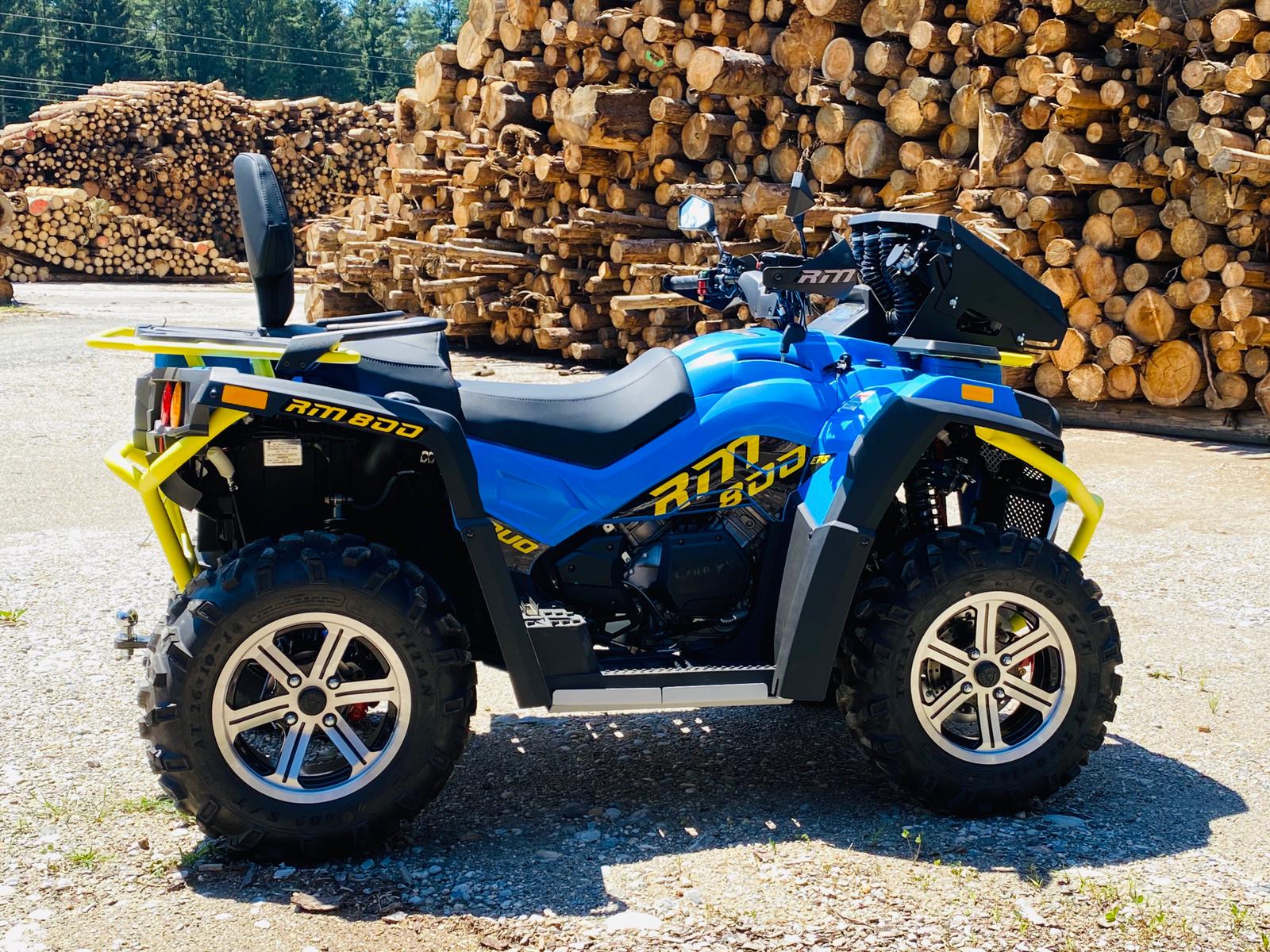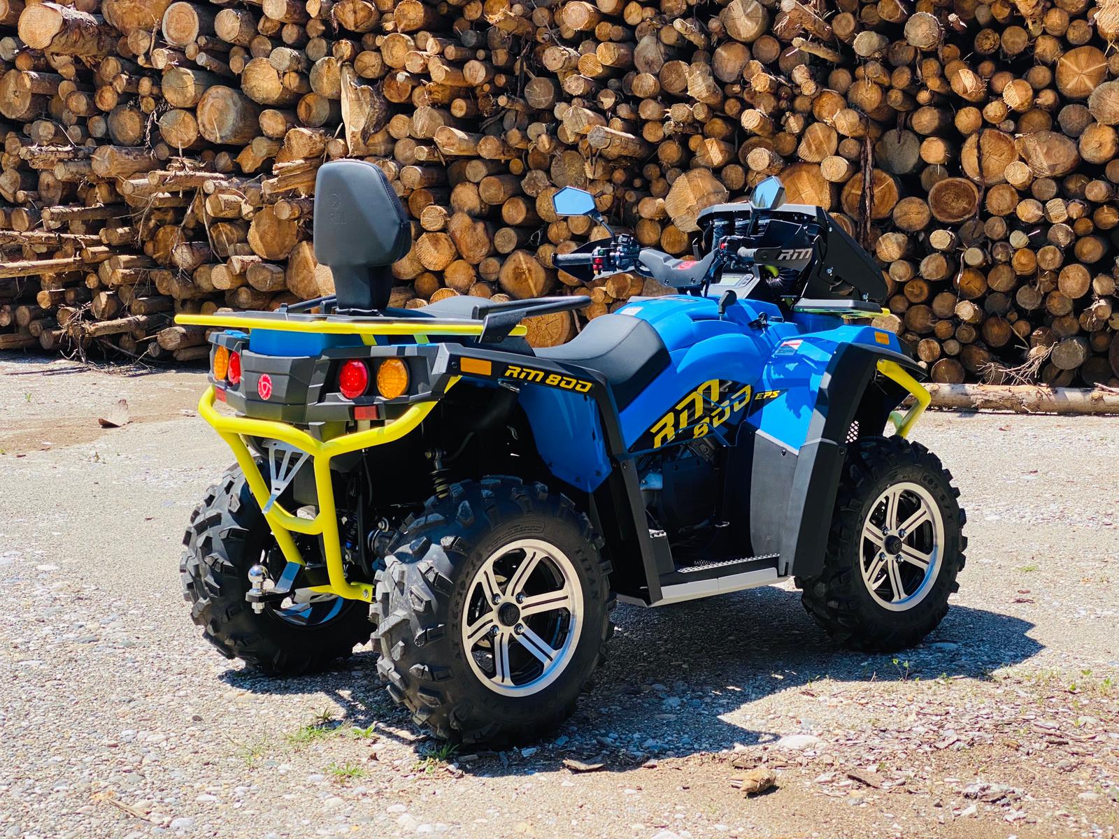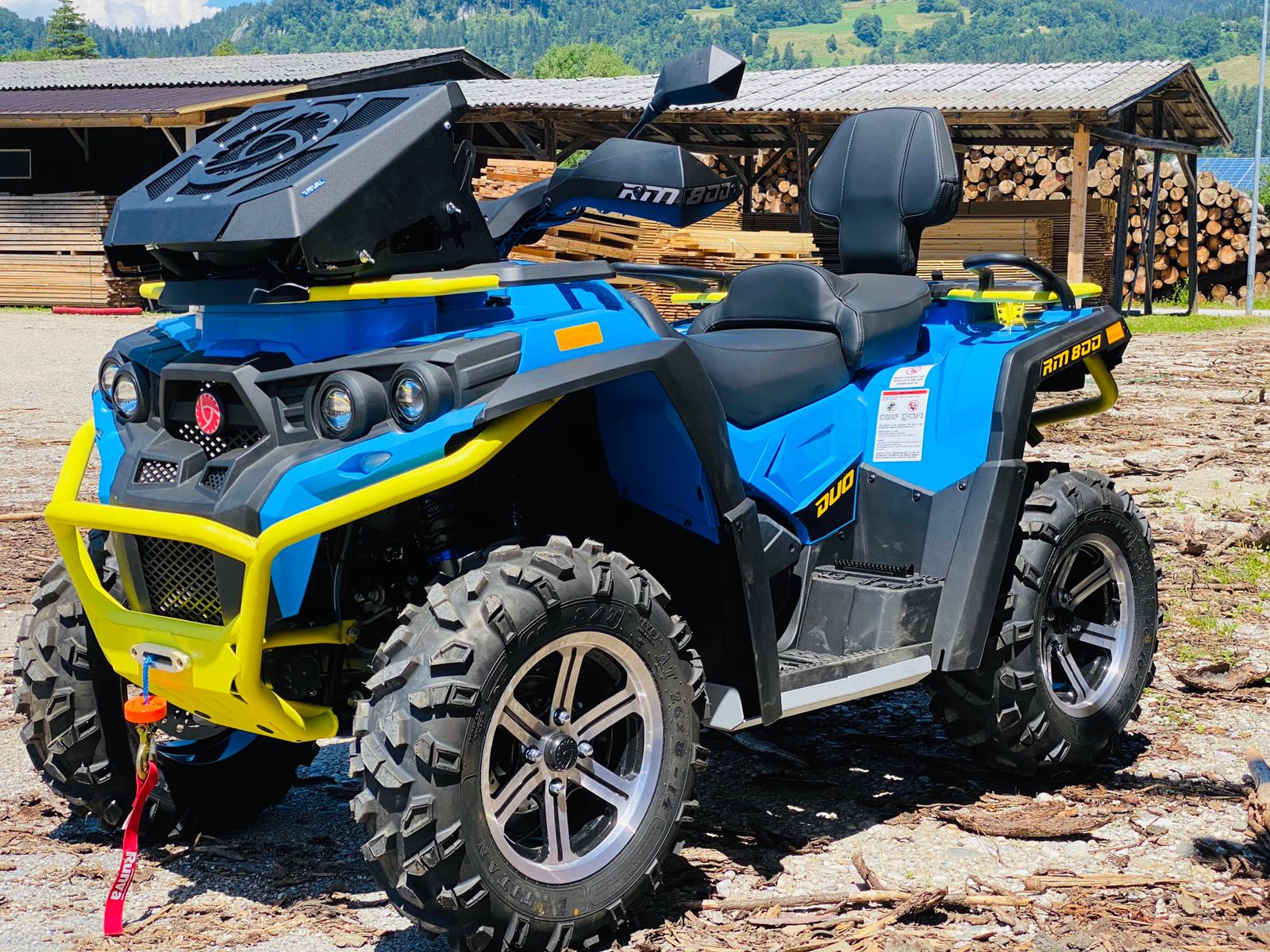 Mi vam predstavljamo RM 800 DUO model (produžena verzija za 2 osobe) opremljen EPS (servo upravljač) u TROPHY verziji sa izdvojenim hladnjakom za hladjenje i usisom tipa SNORKEL (odličan za prolazak kroz dublju vodu). RМ 800 DUО je najmoćnije terensko vozilo u asortimanu RM-a. Bez problema se snalazi u raznim situacijama i zadacima. Samopouzdano će vam funkcionisati van puta. Ako je potrebno izvući će putnički automobil zaglavljen u blatu, teret prevesti na prikolici,vući trupce sa vitlom ili pak biti koristan za neke druge stvari. NA RМ 800 DUО zanimljivo je i lako ostvariti šumske rute i voziti se uživajući u radosti odmora u prijateljskom društvu. U sportskoj biografiji „osam stotina“ nalaze se razne nagrade na međunarodnim ali i sverurskim takmičenjima. 2019. godine ruski inženjeri mehanike izvršili su čak 18 promena od različitog značaja na ovom modelu tako da RМ 800 DUО napušta montažnu liniju sa poboljšanima funkcionalnim svojstvima i potpuno drugačijom ergonomijom.